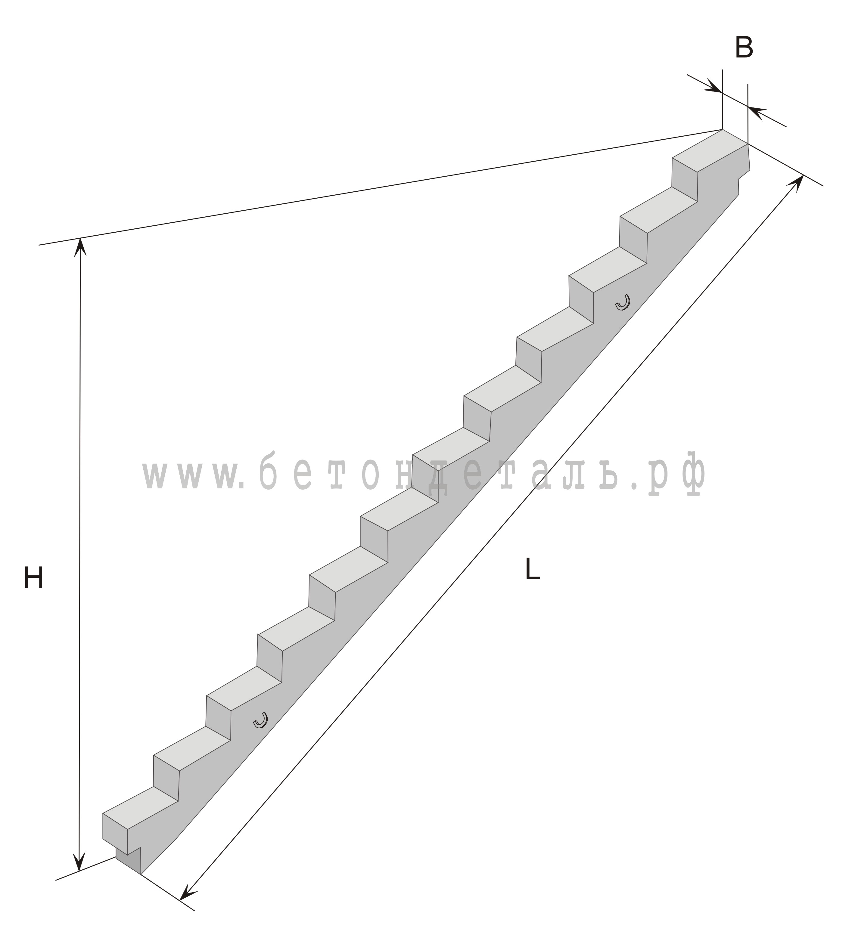 Маркировка лестничных балок состоит из цифробуквенного набора, включающего в себя условное обозначение наименования изделия и габаритных размеров.