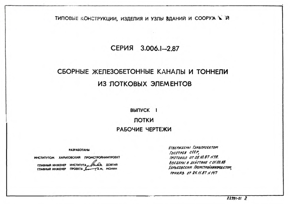 Серия 3.006.1-2/87. Сборные железобетонные каналы и тоннели из лотковых элементов