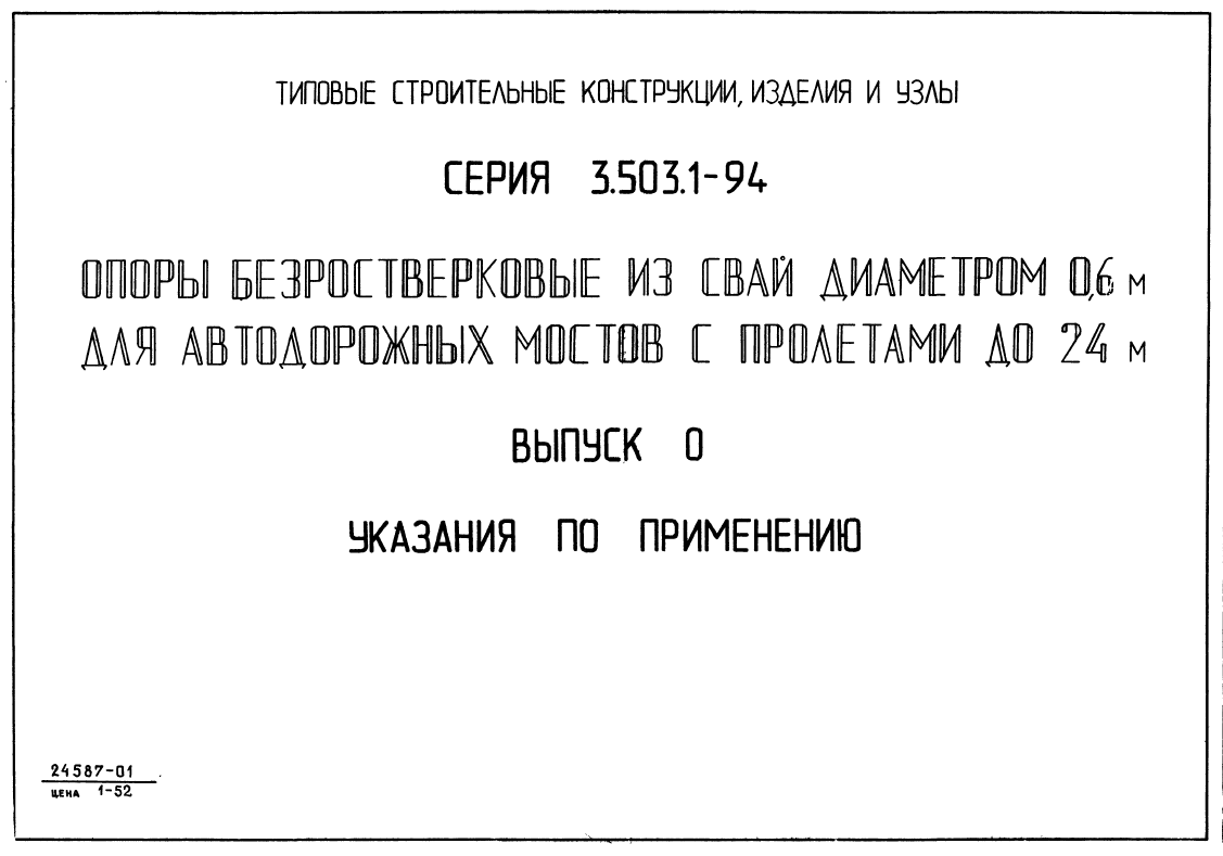 Серия 3.503.1-94. Опоры безростверковые из свай диаметром 0.6м для автодорожных мостов с пролетами до 24 м.