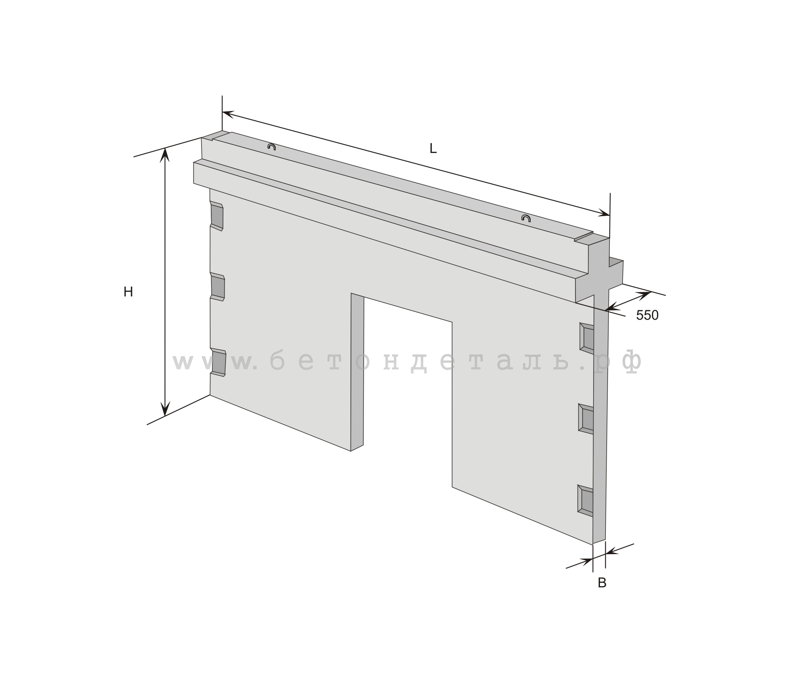 Диафрагмы жесткости с проемами по середине 2ДП 56-33 – это железобетонное изделие, представляющее собой один из основных элементов зданий и сооружений, обеспечивающий безопасность конструкции в ходе эксплуатации. Основной задачей диафрагмы жесткости 2ДП 56-33 является восприятие горизонтальных нагрузок, таких как ветровые, сейсмические и нагрузки от действующего оборудования в здании. Нагрузка, передаётся на диафрагму от наружных стен через «диск» перекрытий. Как правило, ядра жесткости высотных зданий устанавливаются на массивный монолитный плитный фундамент. Диафрагмы жесткости в системе унифицированного каркаса могут формироваться из сборных железобетонных элементов. Диафрагмы в виде ядер жесткости могут иметь различную форму в виде плоских стен, уголков, швеллеров, замкнутых сечений прямоугольников, многоугольников и т. д. Консоли диафрагм жесткости сконструированы на расчетные нагрузки 55 и 110кН/м.