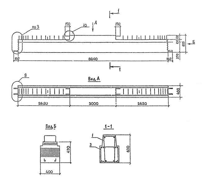 1Р6  Ригели для одностороннего опирания плит Серия 1.020.1-2с/89.