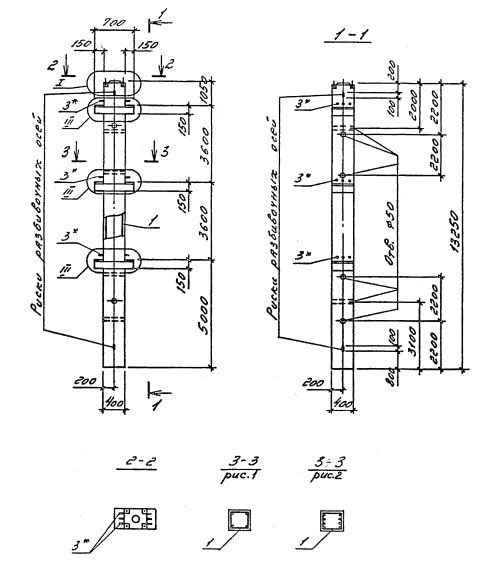 3КНД 36.48    Колонны двухконсольные для нижних этажей (Серия 1.020.1-4).