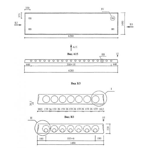 Плиты длиной 6280 мм и шириной 1490 мм с напрягаемой арматурой из стали классов A-IIIв, A-IV, Ат-V , из тяжелого бетона. Метод натяжения - электротермический.