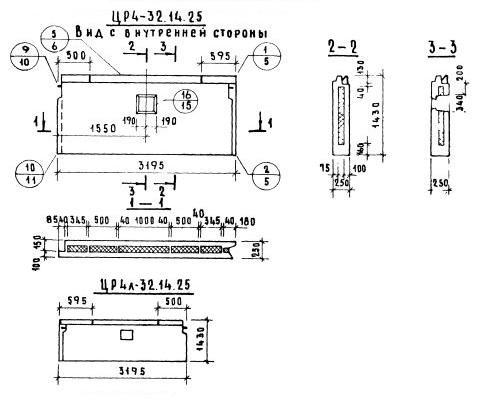 Серия 1.117-9    Панели групп ЦР1, ЦР2, ЦР4, ЦР5  толщиной 250 мм.