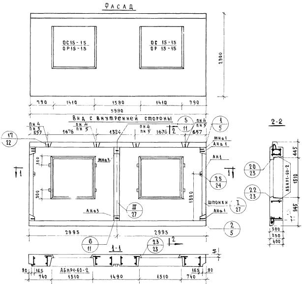 НР1-60.29.4-2   Наружная стеновая панель рядовая по Серии 1.132-1.