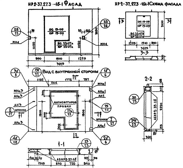 НР2-37.27.3-1б-1 Наружная стеновая панель рядовая по Серии 1.132-1.