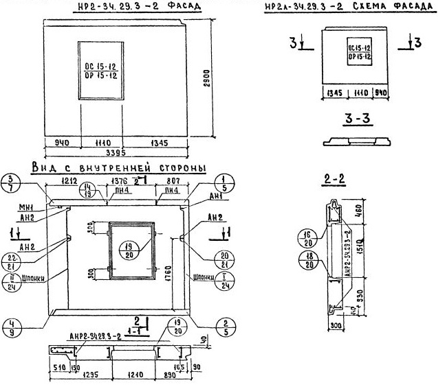 НР2-34.29.3-2    Наружная стеновая панель рядовая по Серии 1.132-2.