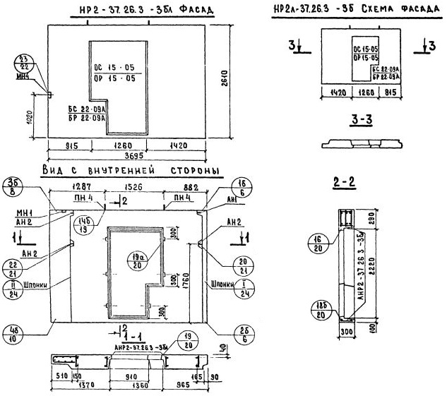 НР2-37.26.3-3бл Наружная стеновая панель рядовая по Серии 1.132-2.