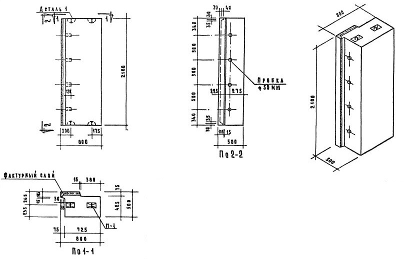 Стеновые легкобетонные блоки толщиной 50 см по Серии 1.133-1.