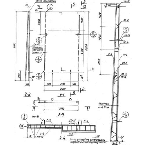 ПС 300-600-32 Панели стеновые консольные для прямоугольных сооружений рядовые по Серии 3.900.-3.
